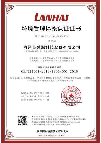 環(huán)境管理體系認(rèn)證證書