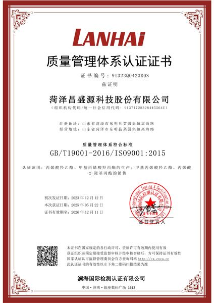 質(zhì)量管理體系認(rèn)證證書